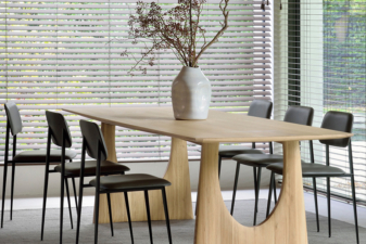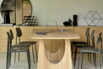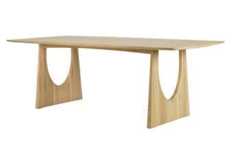 With enriched shapes and unexpected details, the Geometric solid oak dining table is a statement item, equally at home in the dining room or workspace. Luxury comes with its length, which is offset by softened edges and natural lines. Interesting shapes are in play to add volume and practical comfort.