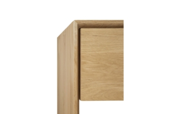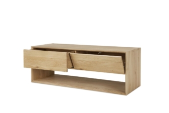 The Nordic collection by Ethnicraft combines refined design with the purity of solid wood. Bevelled edges give this solid oak furniture an extra edge. This TV cupboard features one flip-down door and one drawer and is available in two sizes making it a versatile media storage option.
