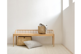 The Ethnicraft Spindle collection found its inspiration in the traditional spinning wheel and incorporates perfectly aligned spokes into the backseat. Wherever you choose to place it, the Spindle bench in solid oak is a striking piece.
