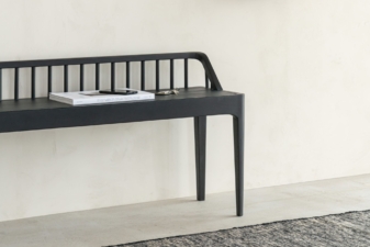 The Ethnicraft Spindle collection found its inspiration in the traditional spinning wheel and incorporates perfectly aligned spokes into the backseat. Wherever you choose to place it, the Spindle bench in solid oak is a striking piece.