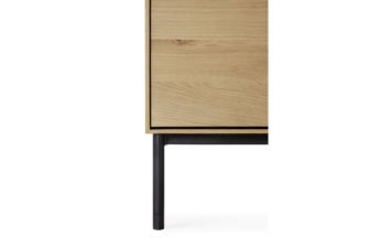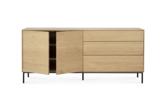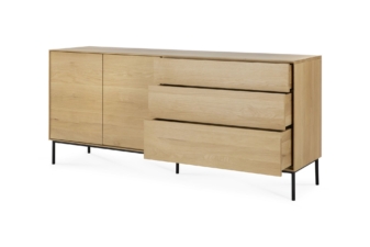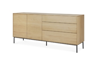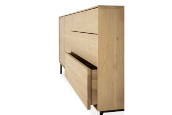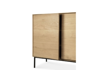 Combining soft round legs and eye-catching graphic lines, this Whitebird sideboard features two push open cupboards and three push open drawers.