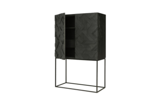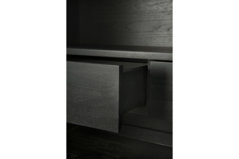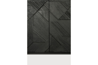 In his quest to add movement to the surface, designer Alain van Havre started layering and combining triangular shapes, leading to an interesting composition for this remarkable storage collection. By using multiple layers, a sense of depth and dynamism is created in the intricate arrangement of solid teak. Motion and warmth are enhanced further, perfecting the natural attributes of wood by brushing the surface to highlight the grain.