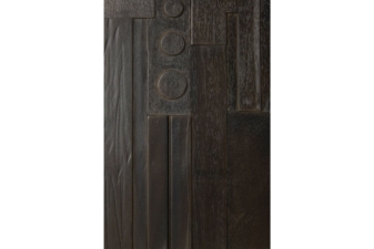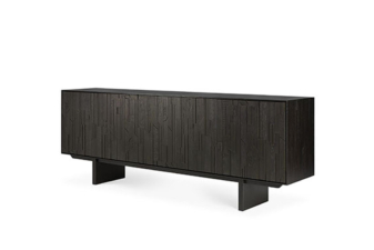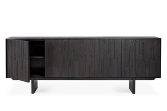 The layered wood pieces of the Ethnicraft Mosaic sideboard form a rhythm of shapes, originally inspired by the remaining offcuts from factory designs.