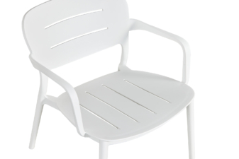The lounge chairs are stackable and have a UV additive to prevent sun damage.