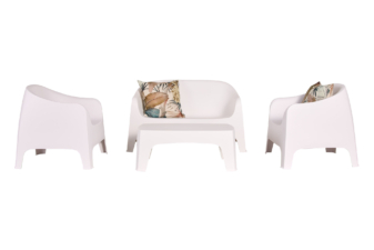 Its practical features include a UV additive to protect from sun exposure, and the design is stackable.