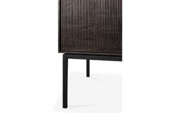 Every single line is hand carved, making each piece truly unique. Small imperfections are part of the story, even more so: they enhance Grooves' character. The result is a slightly different surface every time, each with its own rhythm and dynamics. Dark tinted teak continues on the inside, where shelves and drawers add generous storage for everyday items.