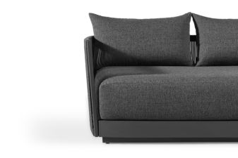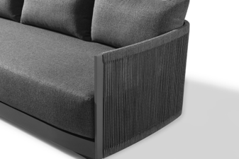 Features: Handcrafted aluminium frame with powder coating for weather resistance; back and arms handwrapped with all-weather rope; quick dry flow-through foam cushions and Sunbrella fabric.