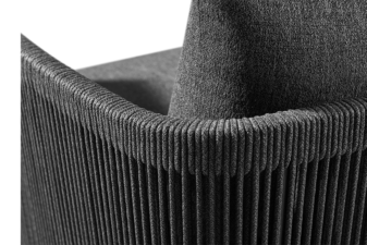Features: Handcrafted aluminium frame with powder coating for weather resistance; back and arms handwrapped with all-weather rope; quick dry flow-through foam cushions and Sunbrella fabric.