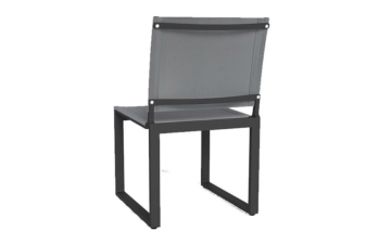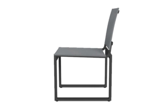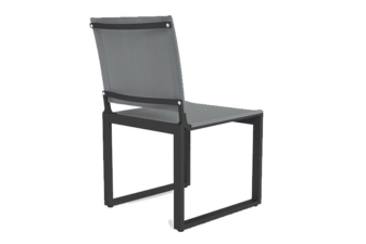 The Hayman Armless Dining Chair from Harbour Outdoor was designed as the perfect everyday seat — a simple, modern chair with an aluminum extrusion frame supported by a Batyline sling suspension for added comfort and easy cleaning.