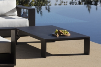 Defined by an elongated frame, the rectangular Hayman Coffee Table was designed as the perfect anchor for your outdoor seating set — a generous surface in slatted extruded aluminum that's streamlined yet functional. An indoor aesthetic meets outdoor performance with this geometric modern coffee table made for a variety of spaces.