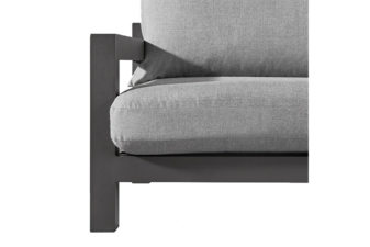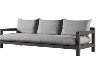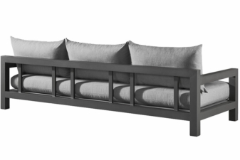 The Pacific 3-Seater Sofa features clean lines, a plush domed bench cushion with knife–edge back cushions, supported by a Batyline sling suspension for added comfort. Handcrafted from powder coated extruded aluminum, this piece is more compact with an inviting style, making it suitable for a range of outdoor spaces.