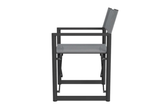 The Pacific Folding Dining Chair from Harbour Outdoor offers streamlined style — a Batyline sling suspension for physical ease and relaxation, supported by aluminum hardware, all crafted in a powder coated extruded aluminum frame.