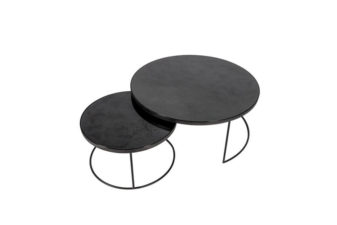 The Ethnicraft nesting coffee table set captures the beauty of your environment on its reflective surface.