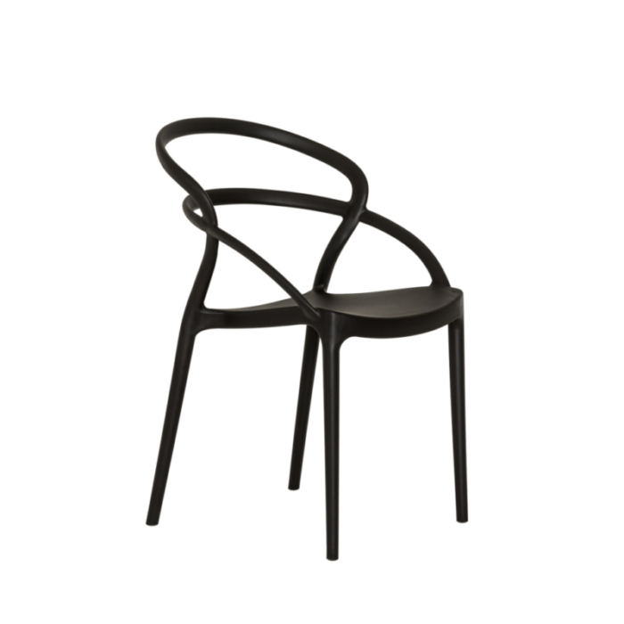 The Aero chair is available in black and white. Durable and sturdy, with a simple design, the Aero is stackable and has a UV additive to prevent sun damage.