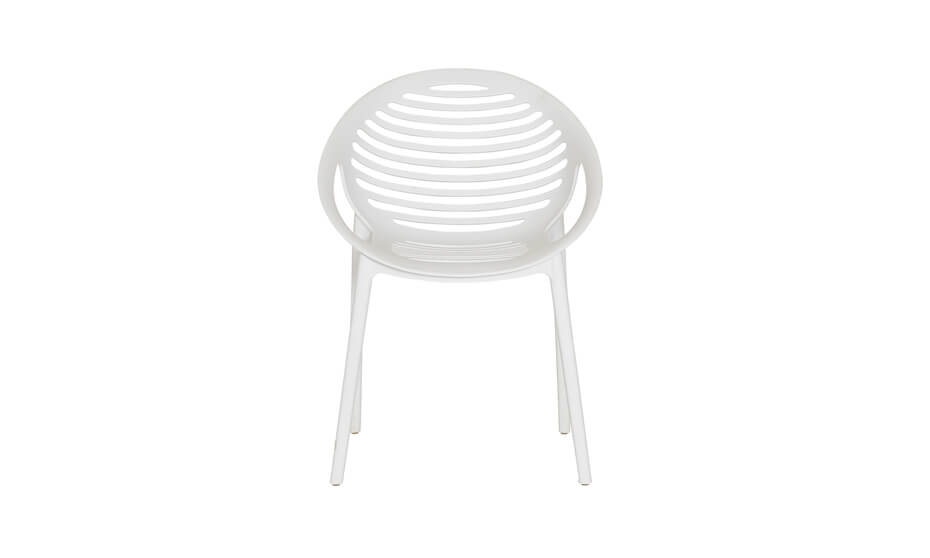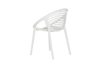 The Tig chair (previously called Orbit) is available in black and white. Durable and sturdy, with a simple design, the Tig is stackable and has a UV additive to prevent sun damage.