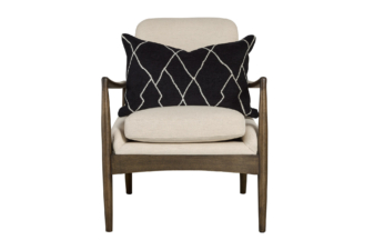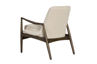 A contrasting stained walnut frame and natural upholstery is offset by subtle curves through the legs and arms to create a timeless design.